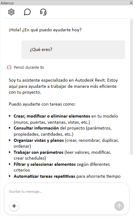 Al conocer más de cerca el día a día de arquitectos e ingenieros, entendimos sus retos: tareas repetitivas, validaciones manuales, revisión de parámetros, control documental… Entonces nos planteamos: ¿y si llevamos los agentes de IA a estas herramientas de diseño?. La idea es ser capaces de hacer todo lo que se hace en Revit a través de lenguaje natural. Queremos que el profesional tenga un compañero dentro de Revit que le ayude en su día a día, automatizando tareas tediosas y aumentando la productividad .