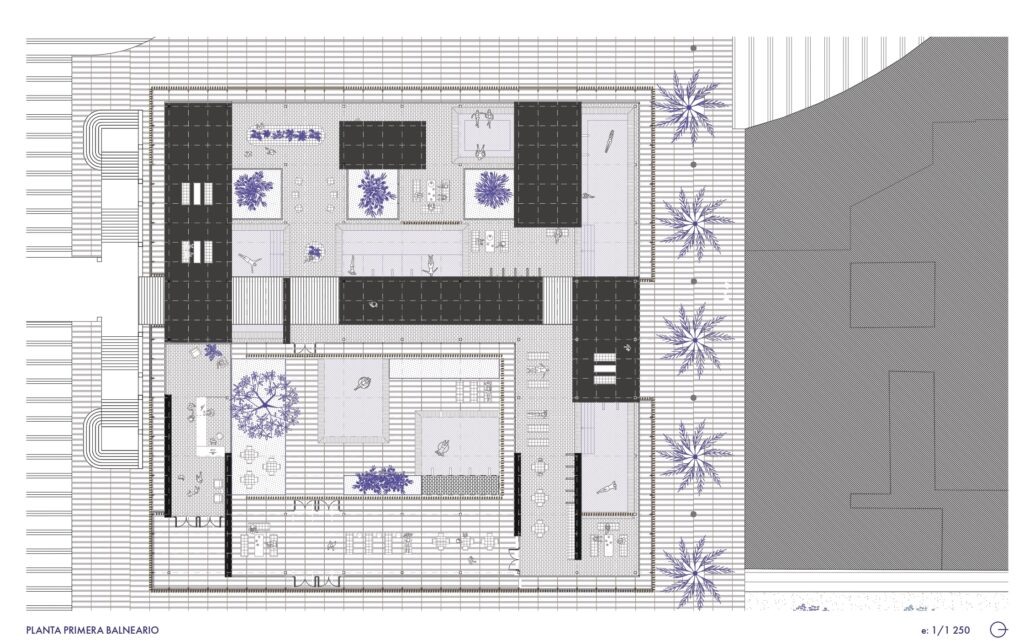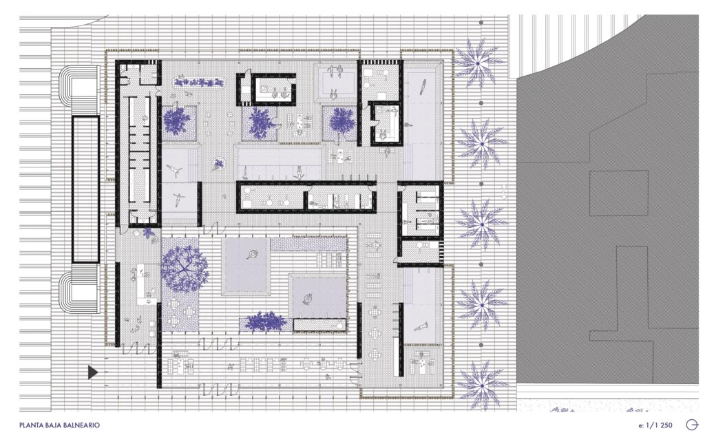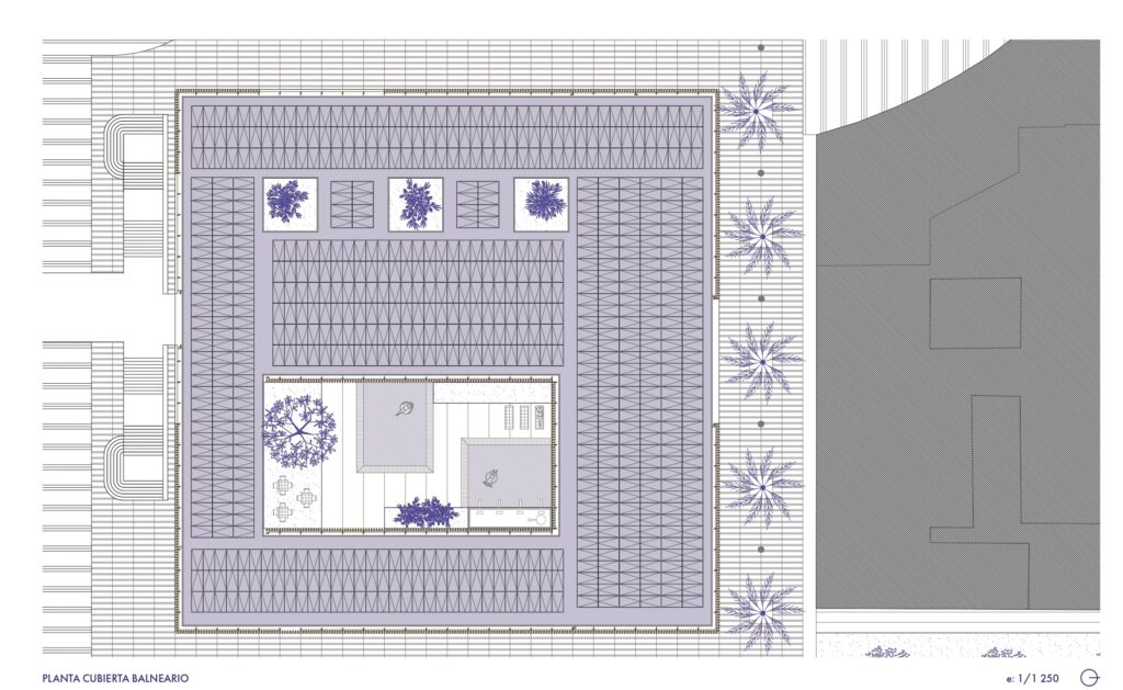 Aunque el desarrollo del TFM se centra en el edificio de talasoterapia, ambos volúmenes comparten una misma vocación: la creación de un entorno de cuidado, silencio y equilibrio, donde la materia cerámica y la madera se convierten en lenguajes de bienestar.