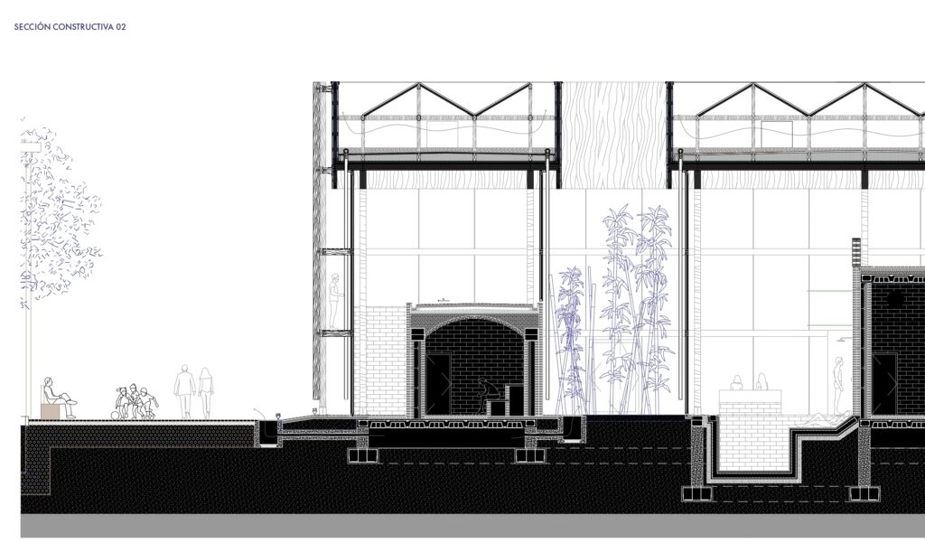 Esta contraposición genera una arquitectura equilibrada entre masa y ligereza, donde cada material define no solo un sistema constructivo, sino también un estado emocional. Los espacios húmedos se resuelven con bóvedas tabicadas de ladrillo, mientras que las zonas de descanso y circulación se abren con celosías y cubiertas de CLT, permitiendo que la luz y el aire se filtren con naturalidad.
