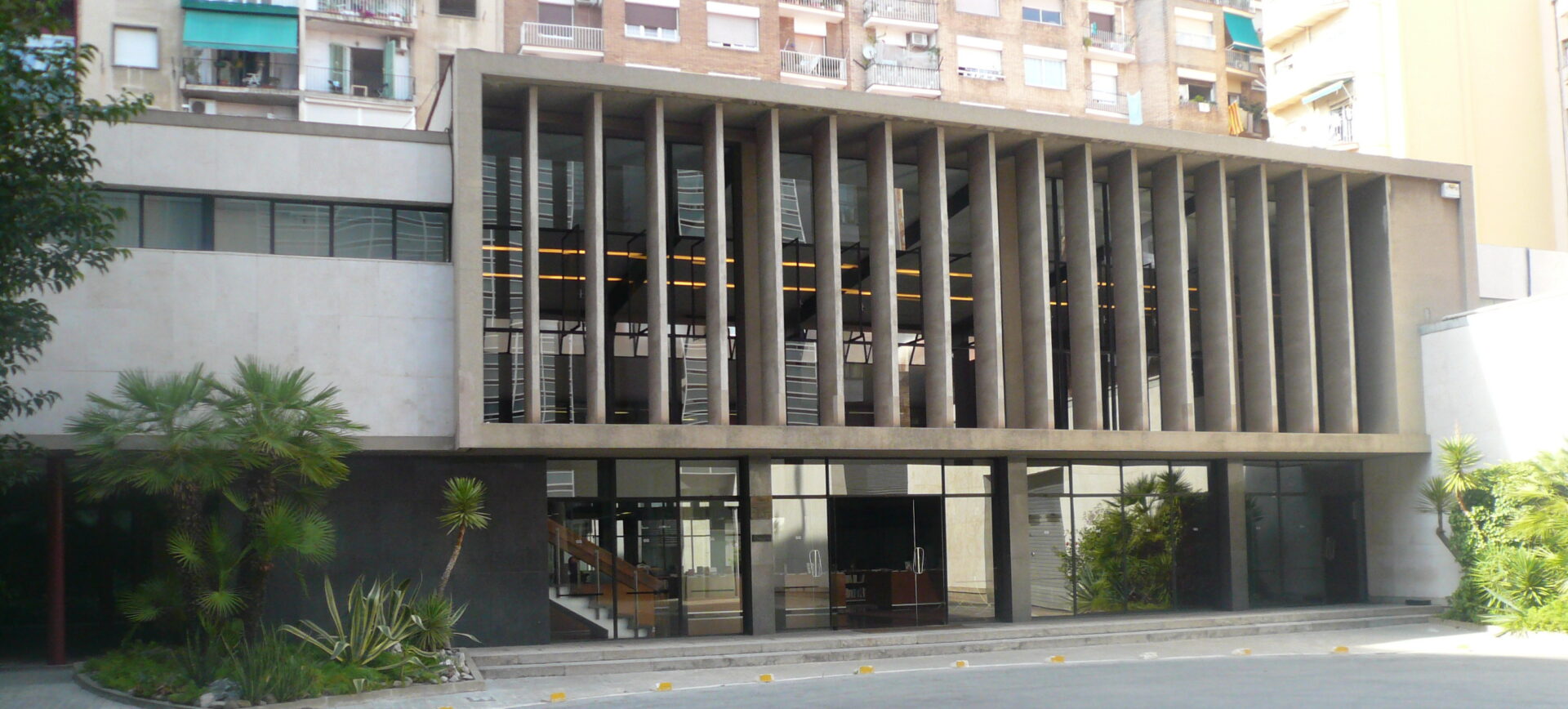 El edificio fue proyectado en 1958 por los arquitectos Joaquim Gili y Antoni de Moragas, dos figuras destacadas de la arquitectura moderna catalana de la posguerra. La construcción se completó a comienzos de la década de 1960 y pronto se convirtió en una referencia por su claridad espacial y su lenguaje arquitectónico moderno.