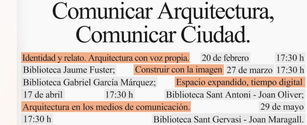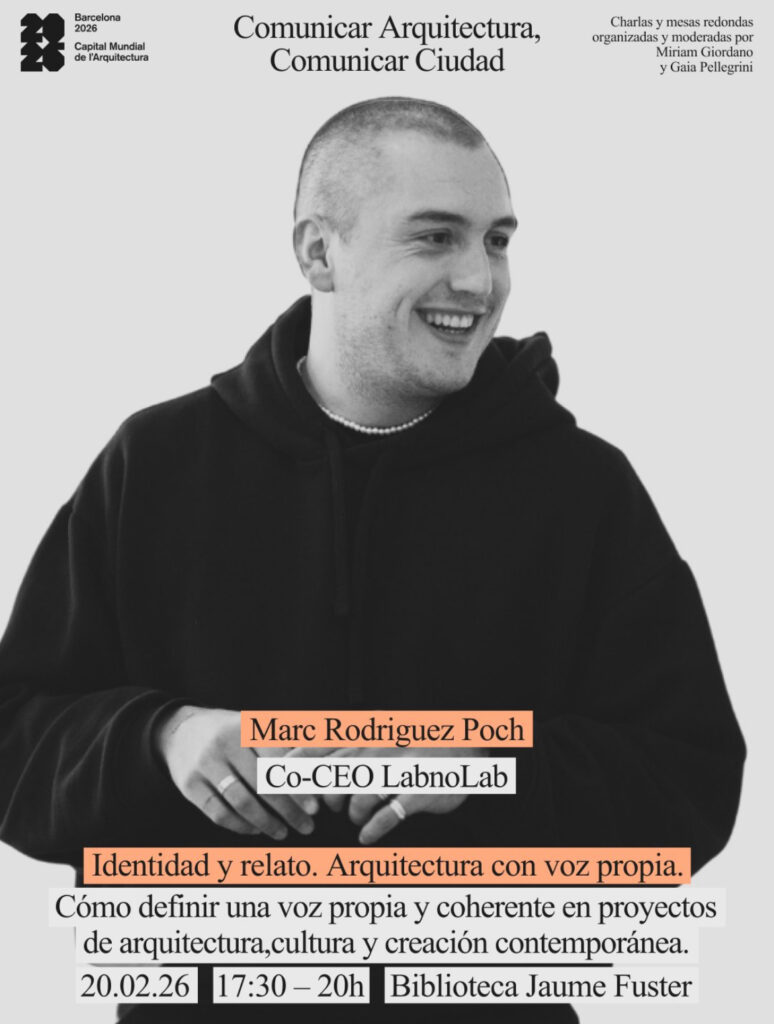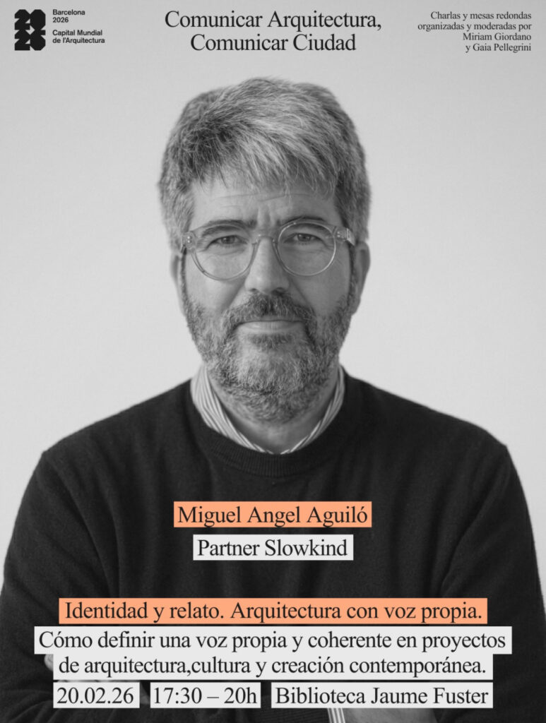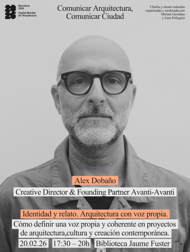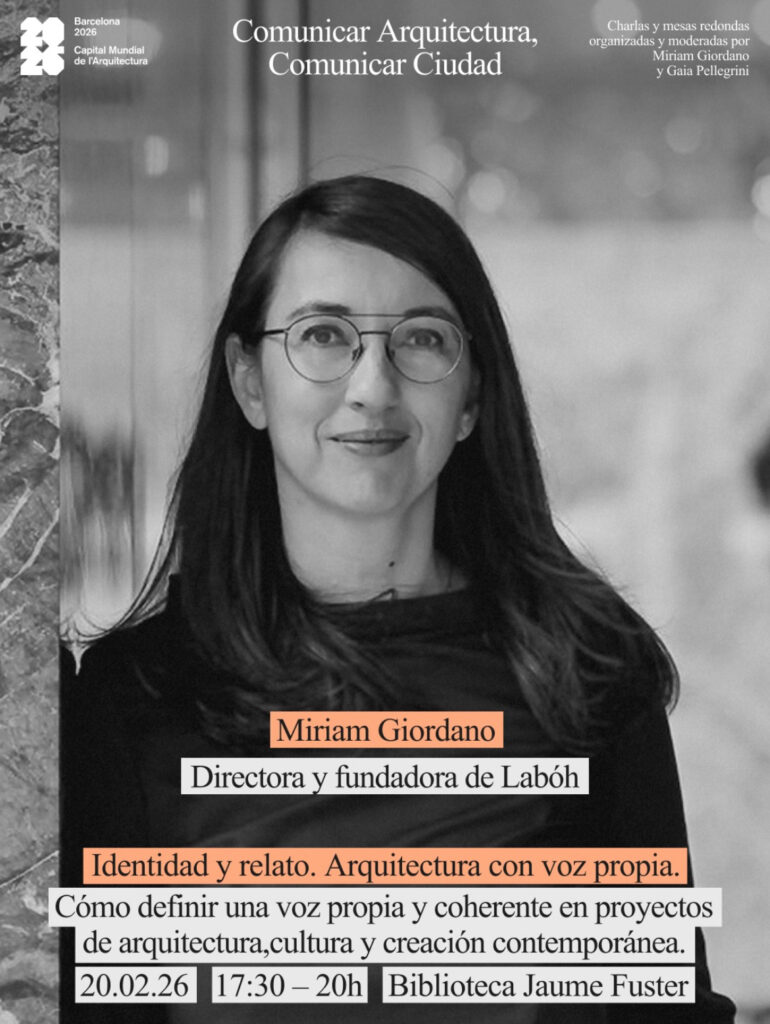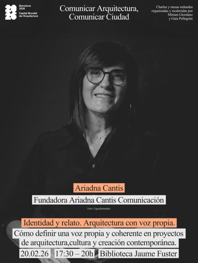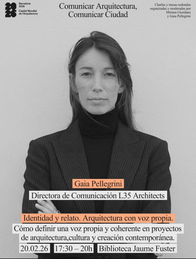 En este contexto, Comunicar Arquitectura, Comunicar Ciudad se despliega como un ciclo que va más allá del formato conferencia. Del 20 de febrero al 29 de mayo de 2026, el programa propone cuatro sesiones abiertas al público y de acceso gratuito (con inscripción previa), comisariadas por Miriam Giordano y Gaia Pellegrini, en el marco oficial de Barcelona Capital Mundial de la Arquitectura 2026 (UNESCO–UIA). El ciclo invita a reflexionar sobre cómo se construyen hoy los relatos, las identidades y las estrategias comunicativas en el ámbito de la arquitectura, la cultura y la creación contemporánea.