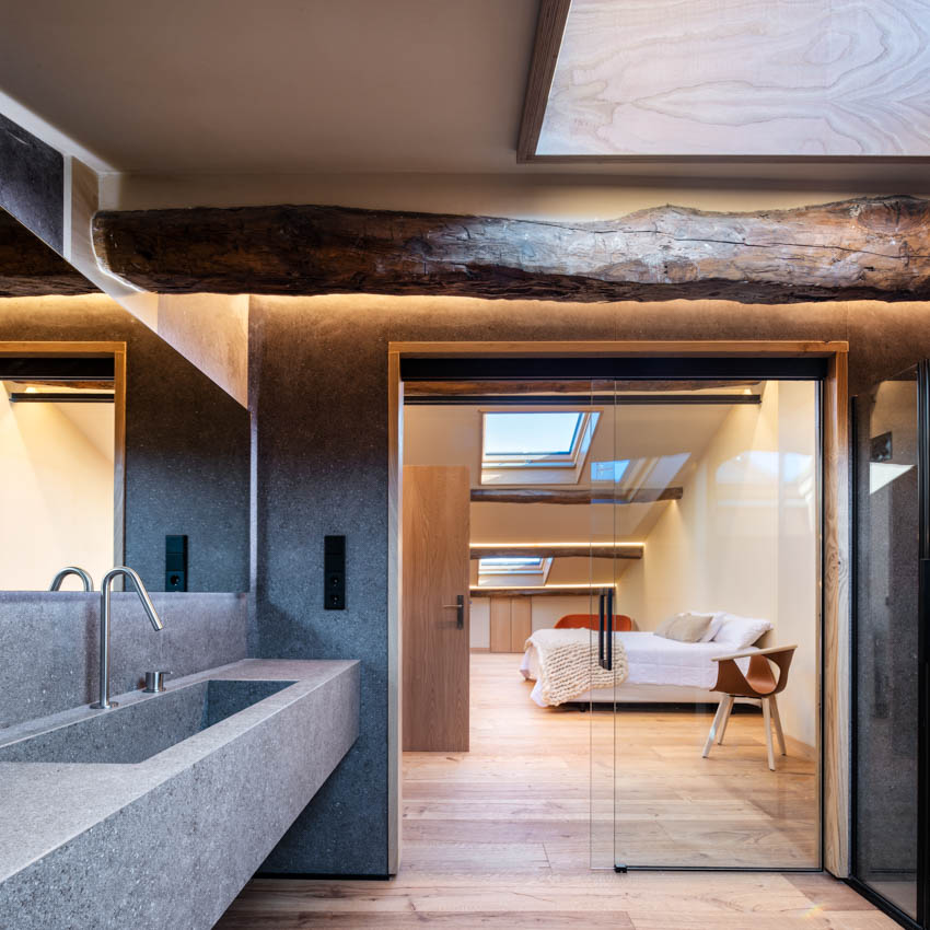 Rehabilitado por el estudio MOL Arquitectura, este hotel de 25 habitaciones distribuidas en cuatro plantas y una superficie total de 1.300 m² no solo responde a criterios de eficiencia energética, sino que propone una experiencia sensorial y emocional profundamente conectada con el territorio.