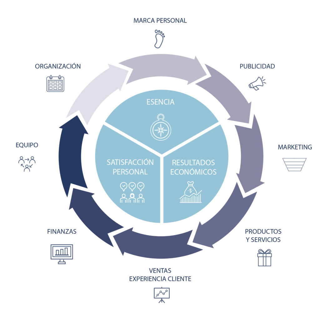 Una de las grandes aportaciones de Rivera es la Matriz de Negocio, una herramienta que permite evaluar 11 dimensiones clave de cualquier estudio: esencia, marca, publicidad, marketing, ventas, experiencia de cliente, organización interna, procesos, finanzas, resultados económicos y satisfacción personal. Esta metodología permite detectar incoherencias, debilidades y oportunidades de mejora.