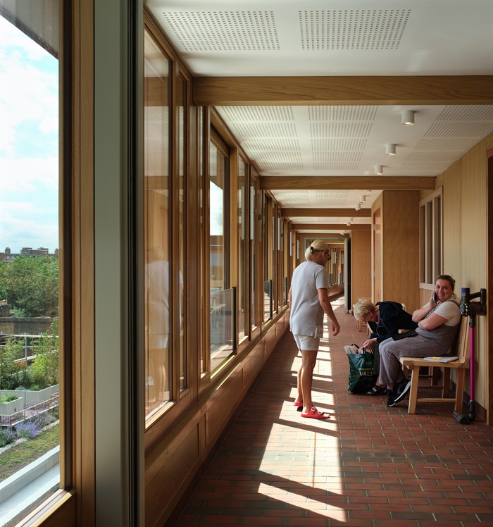 “En Bermondsey, United St Saviour’s Charity, una entidad con casi 500 años de historia, se propuso reinterpretar el modelo tradicional de almshouse, ofreciendo vivienda social colectiva de alta calidad para personas mayores. El nuevo Appleby Blue ofrece 59 apartamentos y espacios compartidos.