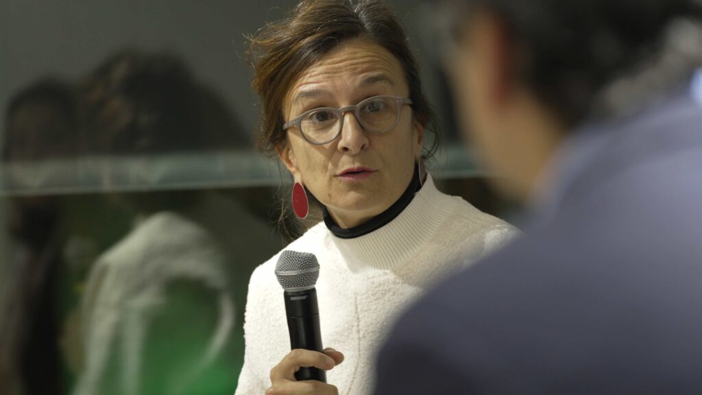 Greta Tresserra fue la encargada de introducir uno de los ejes fundamentales del debate: la sostenibilidad como cambio sistémico. “La crisis climática no es una amenaza lejana. Está aquí. La arquitectura no puede seguir formando parte del problema. Debe liderar las soluciones”, afirmó. Recordó que el sector edificado consume el 40 % de la energía europea y es responsable del 36 % de las emisiones de CO₂. La nueva directiva europea obliga a una transición profunda: edificios de emisiones cero a partir de 2030 y un parque edificado que alcance la certificación energética A antes de 2050.