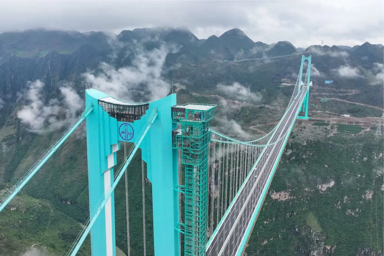El Puente del Gran Cañón Huajiang, inaugurado el 28 de septiembre de 2025, supera todos los récords de altura en puentes mundiales, cruzando el profundo cañón sobre el río Beipan en la provincia de Guizhou. Soportado por dos torres de 262 metros, cubre un tramo suspendido de 1.420 metros y un total de 2.890 metros de longitud. Su diseño contempla elementos turísticos como pasarelas de vidrio, un ascensor panorámico y un restaurante elevado, además de espacios para puenting y vistas espectaculares.