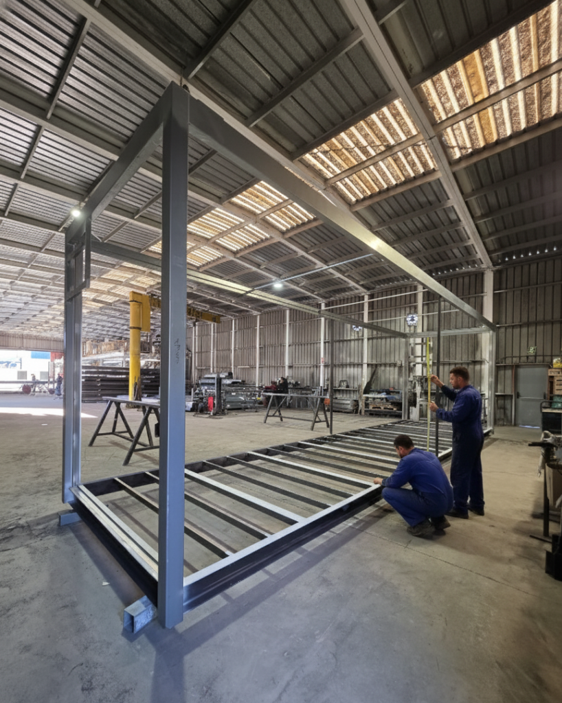 El diseño ha estado condicionado por las necesidades industriales de la construcción modular. Para empezar, se requería una nave con gran altura libre para permitir el trabajo con módulos tridimensionales y facilitar la operación de grúas puente o sistemas de elevación. También se ha priorizado la localización en un polígono con buena conexión logística: “En Castellbisbal hay hasta 17 polígonos industriales y una red viaria que permite el acceso de tráileres de gran tonelaje, fundamental cuando hablamos de transportar estructuras voluminosas”, destaca Carlos Mateo. A nivel interno, el espacio está compartimentado con lógica funcional: zonas de corte y soldadura, áreas de pintura, sectores de ensamblaje, áreas de almacenamiento temporal, y espacios de cocreación donde distintas empresas pueden colaborar en el mismo proyecto. Todo ello gestionado bajo una estructura horizontal y modular, que permita adaptarse a las necesidades cambiantes de cada encargo.
