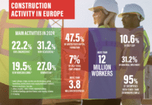 La industria de la construcción en Europa consolida su papel como motor económico y social, con 1,8 billones de euros invertidos en 2024, más de 12 millones de empleos directos y un tejido empresarial dominado por pymes. Los datos se recogen en la nueva edición de Key Figures, el informe anual que la Federación de … Sigue leyendo Europa invierte 1,8 billones de euros en construcción y el sector ya emplea a 12 millones de trabajadores