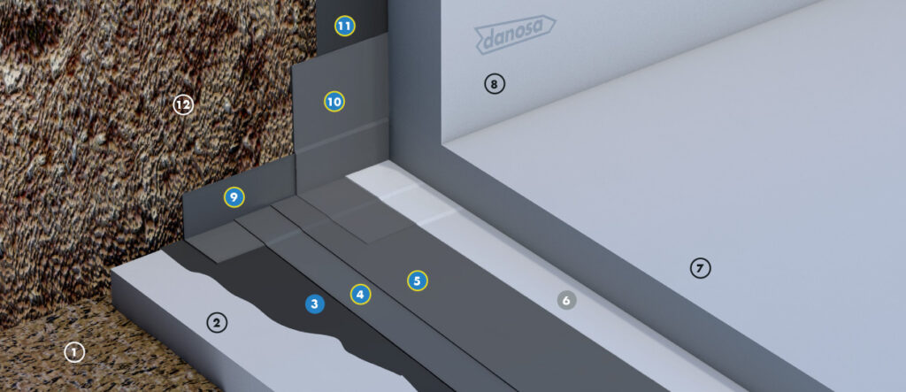 - Sistema Mapeproof FBT: Membrana sintética adherida para estructuras enterradas, diseñada para impermeabilización y barrera frente al gas radón y metano.