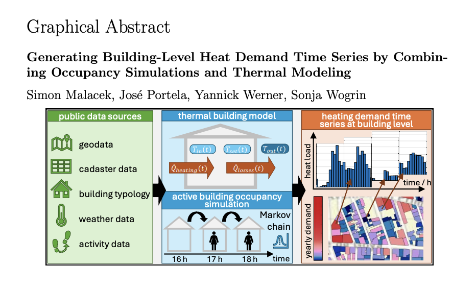 - “Generating Building-Level Heat Demand Time Series by Combining Occupancy Simulations and Thermal Modeling« Simon Malacek, José Portela. Otro modelo más que estima la demanda horaria de calefacción en edificios españoles