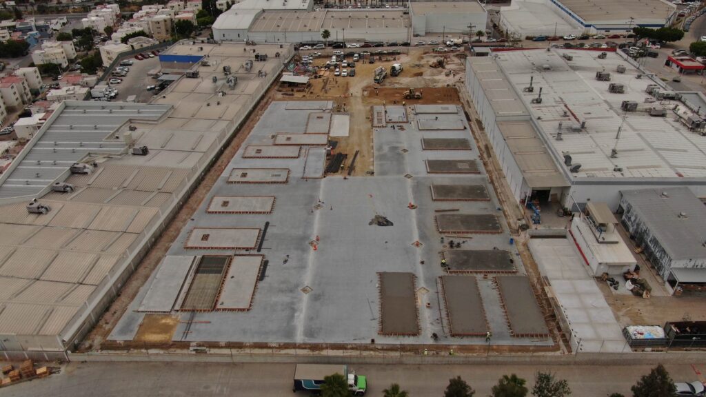 Cada una de las fases se cumplió conforme al programa contractual, validada mediante recorridos de obra y reuniones de seguimiento con el cliente. La precisión en la planificación fue especialmente relevante debido al espacio de maniobra limitado, con edificaciones en tres de sus colindancias, lo que exigió un control minucioso de la logística y de la secuencia de montaje de los muros tilt-up.