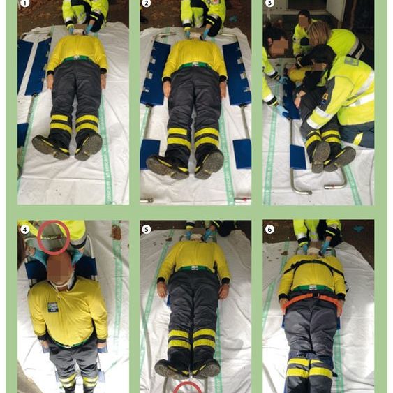- Sujetar al herido para evitar que se caiga. Es necesario sujetar al herido mediante correas o cintas, debido a que cualquier movimiento brusco puede hacer que salga despedido de la camilla.