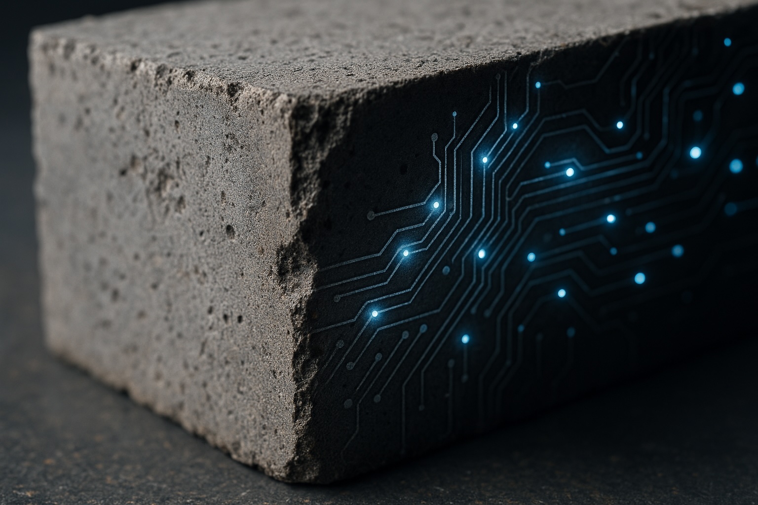 Otra vía prometedora son los componentes constructivos inteligentes: ladrillos o paneles impresos en 3D que integran sensores y electrónica durante su fabricación. Esta estrategia permite crear elementos capaces de autodiagnóstico (detectar microdeformaciones, humedad o temperatura), aportando datos en tiempo real a los gemelos digitales. Revisiones recientes destacan, además, materiales de cambio de fase para mejorar la eficiencia térmica de envolventes y hormigones autosensantes capaces de detectar microdeformaciones del orden de micronegaciones. La lectura es clara: la pieza constructiva deja de ser “muda” para conversar con el edificio.