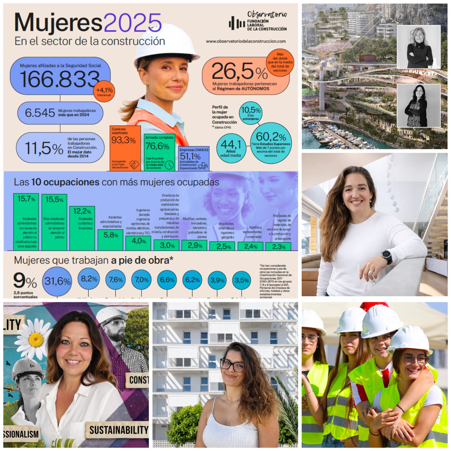 - La presencia de mujeres en la construcción avanza lentamente: ya son el 11,5% del empleo del sector y cerca del 20% en la industria de materiales