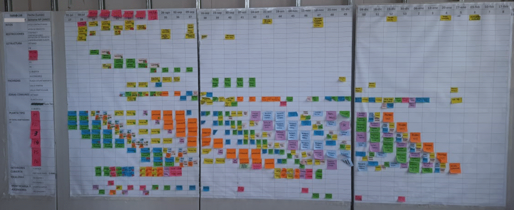 La labor de Think In Lean se centró en crear un sistema de trabajo estructurado, colaborativo y visual que facilitara la toma de decisiones y la coordinación entre todos los agentes de la obra.