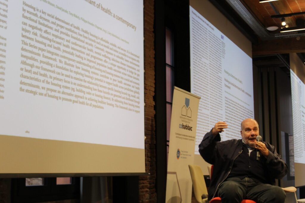 La conferencia inaugural corrió a cargo del Dr. Andreu Segura Benedicto, médico y experto en salud pública, quien explicó el vínculo histórico entre salud pública y urbanismo, y defendió la necesidad de una institución específica que permita actuar estructuralmente sobre los problemas de salud derivados de la falta de vivienda adecuada.