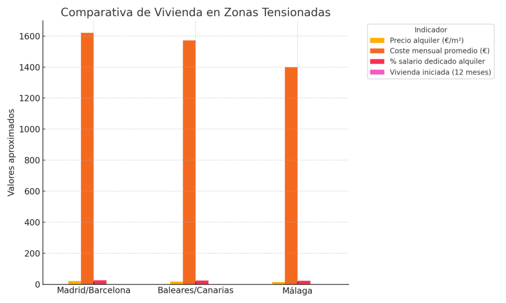 Fuentes: Idealista, Infobae, CEPCO, Observatorio del Alquiler, El País, Málaga Hoy. Barcelona lidera el coste mensual del alquiler con 1.656 euros de media, seguida de Baleares (1.645 euros) y Madrid (1.584 euros). Canarias y Málaga también reflejan una presión creciente. La crisis de acceso a la vivienda se intensifica en los mercados urbanos y turísticos … Sigue leyendo Madrid, Barcelona, Baleares y Canarias, al límite: radiografía de los mercados de vivienda más tensionados en España