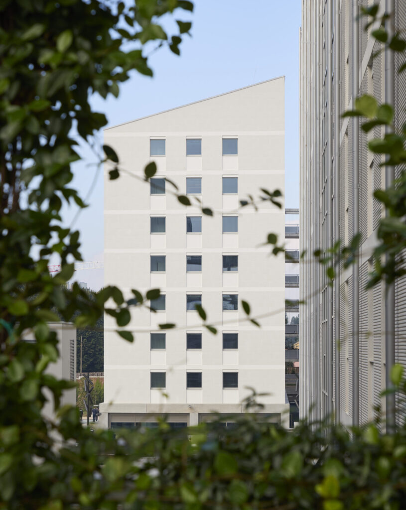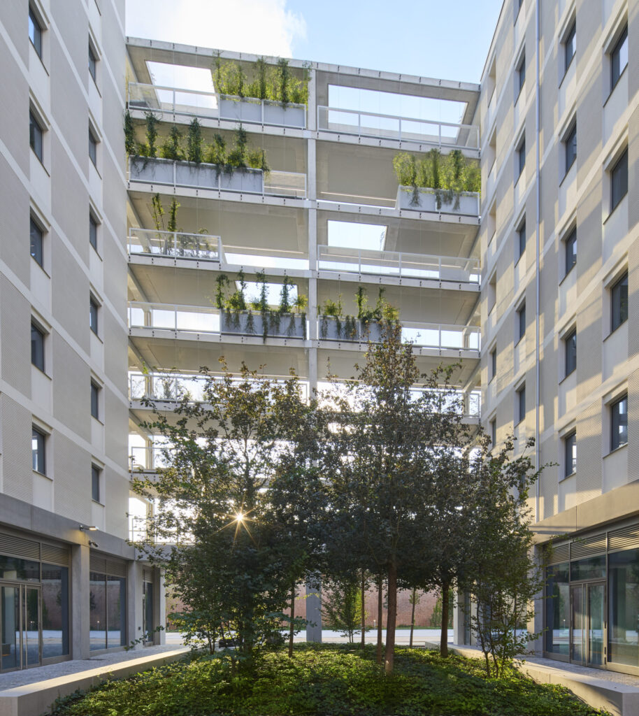 No se trata de un campus autónomo, sino de una manzana urbana porosa que prolonga la morfología milanesa: alineaciones, ritmos de fachada y planta baja activa.